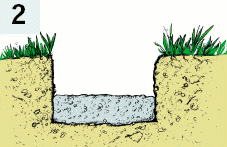Шаг 2.Выкопайте канаву глубиной на 5 см. больше, чем высота канала, шириной на 10 см., чем канал.Не забудьте создать необходимый уклон. |